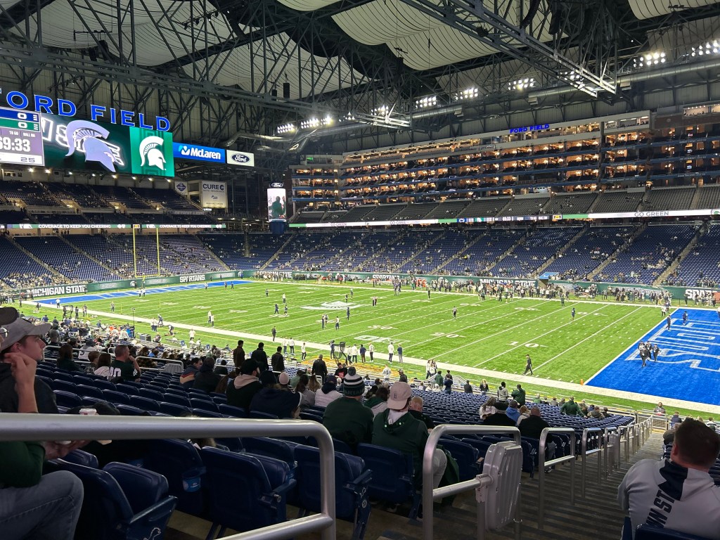 I’ve walked through the venue a few times over the years, usually when I was next-door for a Detroit Tigers game in Comerica Park. But last night I attended the Michigan State Penn State football game at Ford field.