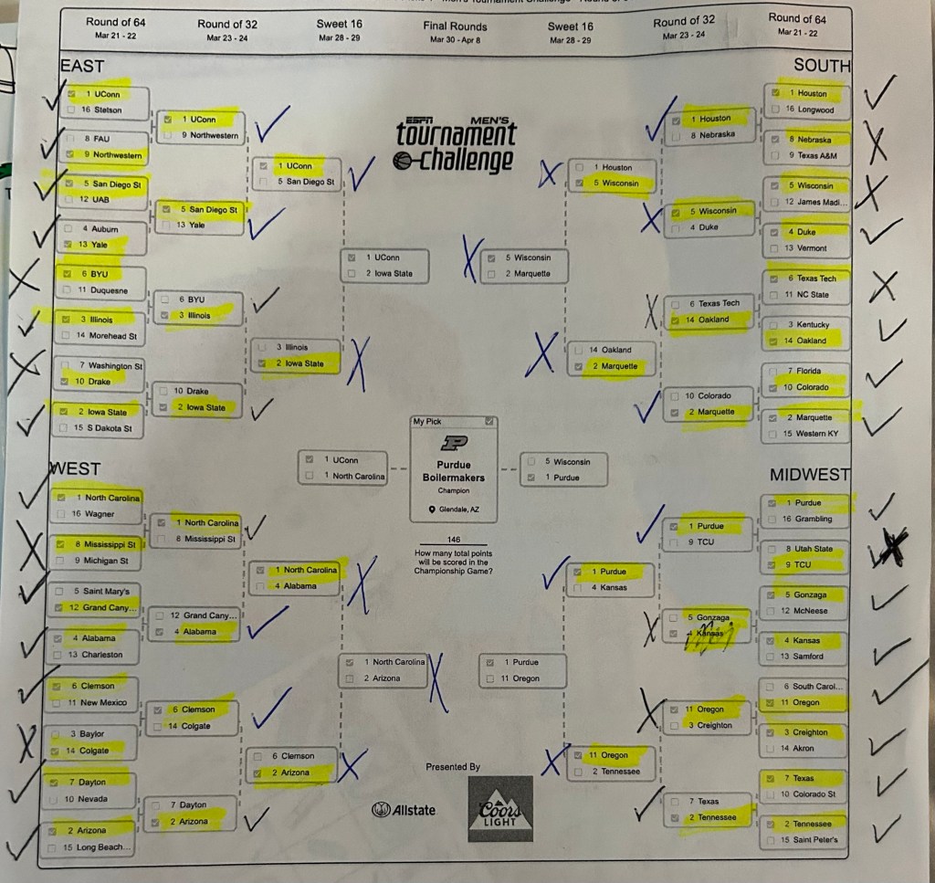 My bracket is officially now in tatters. It is dangling by just a few threads. Here’s a few notes and observations, for whatever they’re worth…