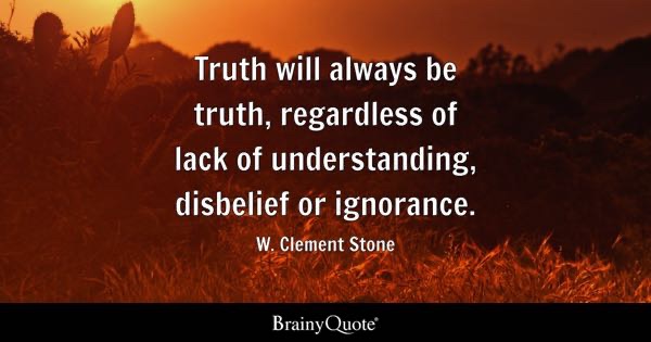 - The truth is the truth. Just because you don’t like something that is factually true doesn’t make it false. Just because you choose to deny the facts, deny reality, doesn’t mean that you are right and the rest of the world is wrong. Or to put it a few different ways: