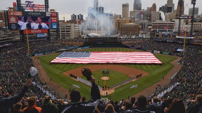 Although (American) football is the most popular sport in the United States, people here in Detroit get MUCH more excited about Opening Day (the home opener) in baseball than they do in other sports. Veronica was telling me the other day “none of the games really count until the Tigers’ home opener”. While the statistics don’t support her opinion, Opening Day truly is like a holiday in Metro Detroit.