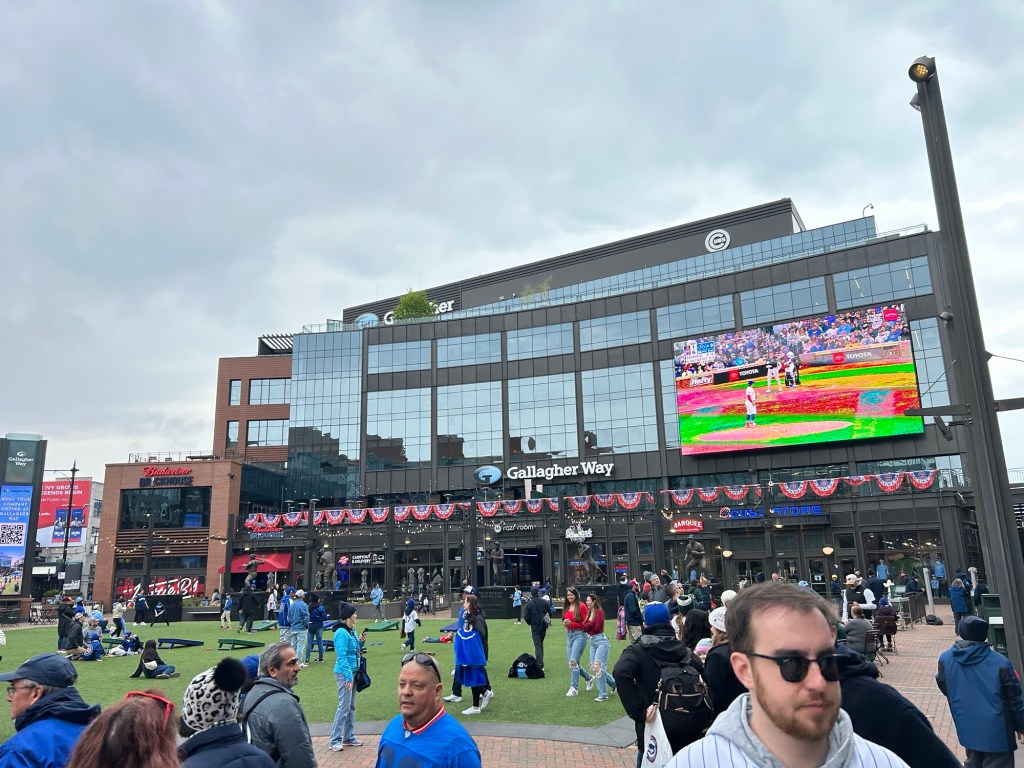 I also really enjoyed Gallagher Way – the open air public space just outside the stadium. I had assumed, however, that this was an open public space. I was a little shocked to see gates up around the perimeter, which meant that it was only open to ticket holders. I caught the top of the ninth inning on a video board installed in the area. As you can see, my favorite feature of Gallagher Way was the statues of Cubs legends.