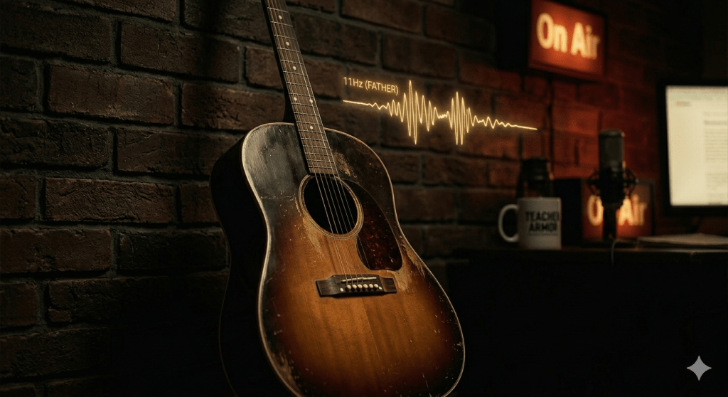 “It’s not a loud noise anymore. It’s just a frequency that sits in the floorboards. It’s the music he loved and the way it still vibrates in the room 11 years later.”