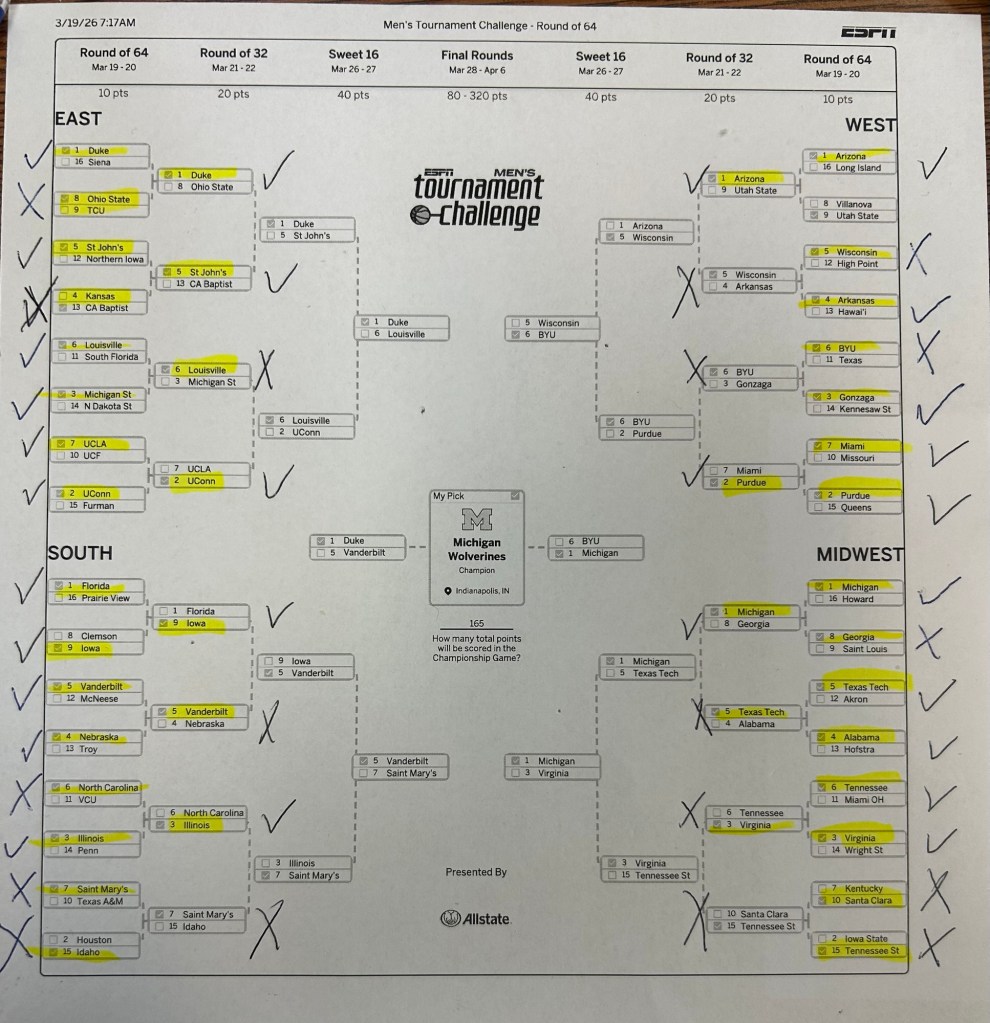 - Rob’s March Madness Day 4 Results – 2026 edition