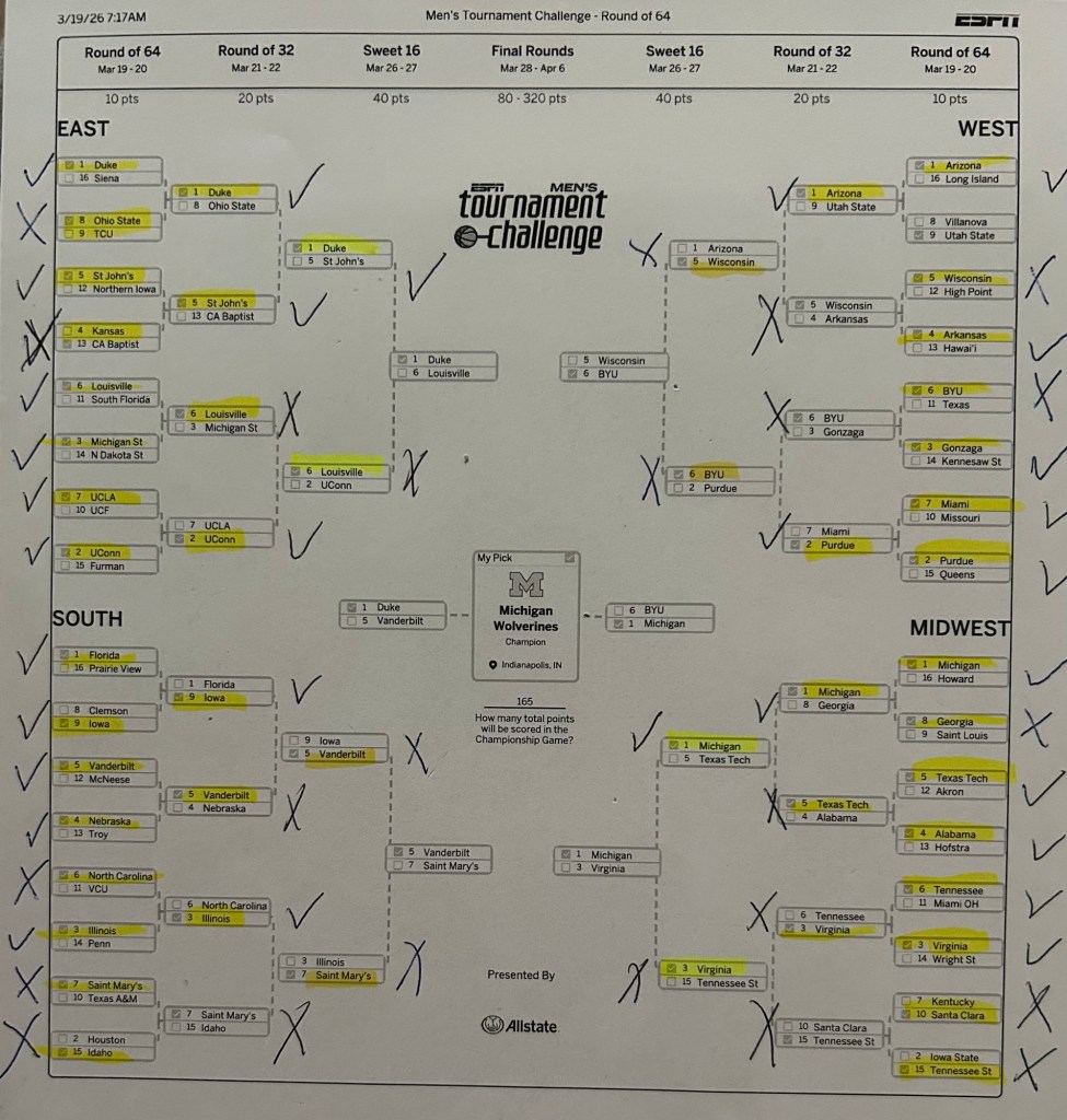 This tracks for my bracket, as I have Michigan winning the national championship.