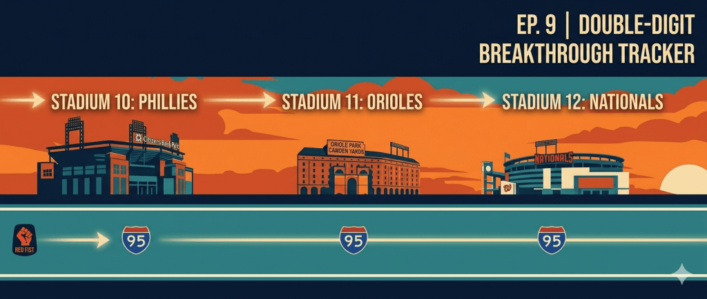 Get your scorecard ready. This Wednesday, I’m stepping away from the “Gorilla” and headed to the ballpark. Episode 9 is all about the I-95 Road Trip and my ongoing mission to visit all 30 Major League stadiums. From the sights and sounds of the East Coast to the “No glitz. Just the work” reality of chasing a dream one inning at a time.